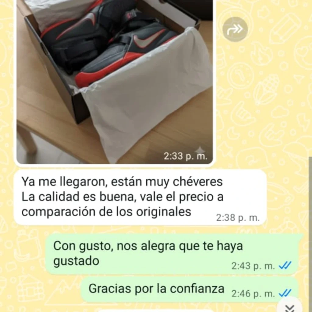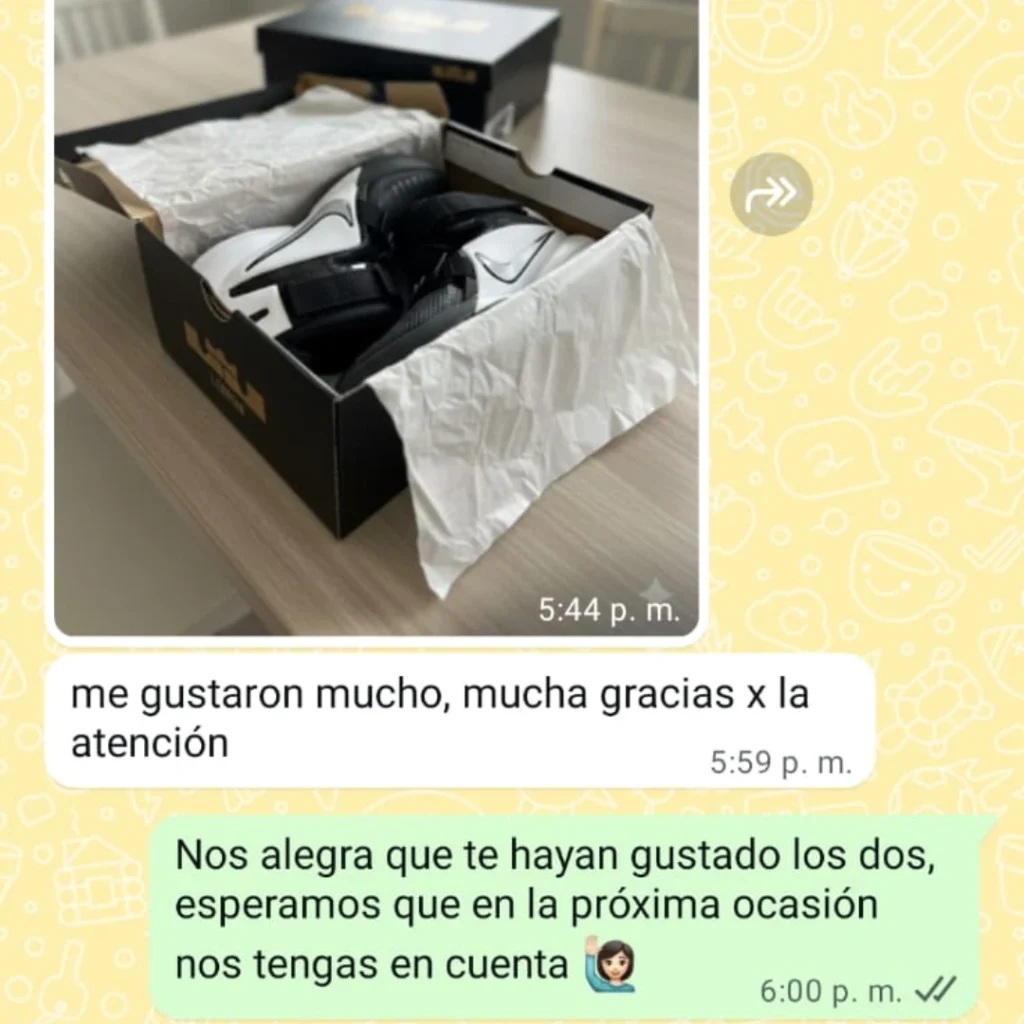 Recibirás un video en vivo a tu WhatsApp al empacar tus zapatillas, junto con el número de guía